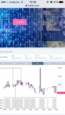 Hellooo everyone I've been trading in Luno for a while now, but I still watch Ice3X to see their market price of bitcoin. Every now and then I notice extreme outliers in the price. Has anyone else notice this? For example, if you look at the exchanges history, the price of bitcoin instantly shoots up to exorbitant amounts ( such as R100 000 per Bitcoin) and then drops to market averages. I've also seen some buy orders filled at around R100 per Bitcoin. Do you think that this is just a system glitch or are people actually trading at these ridiculous amounts?