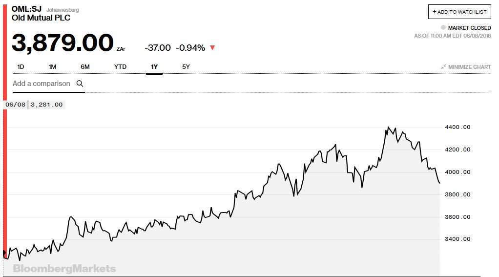 I've had my eye on Old Mutual, and I bought a fair amount last week. The 1 year chart shown below looks quite promising for long term growth and the current price is right on the support line so it might be good for trading too: